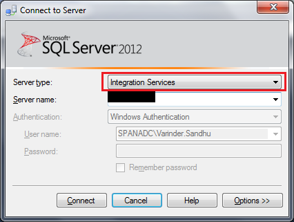 After that you will able to connect SQL Server Integration Services Service.