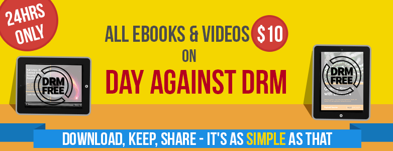 To show their continuing support for Day Against DRM, Packt Publishing is offering all its DRM-free content at $10 for 24 hours only on May 6th – that’s all 2000+ eBooks and Videos at http://bit.ly/1q6bpha